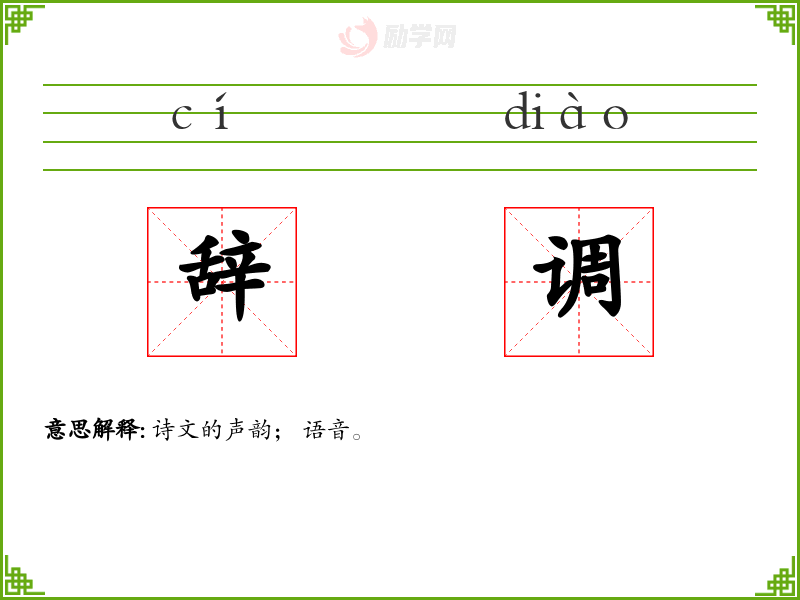辞调的意思是:诗文的声韵; 语音。