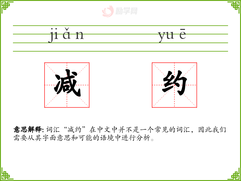 词汇“减约”在中文中并不是一个常见的词汇,因此我们需要从其字面意思和可能的语境中进行分析。