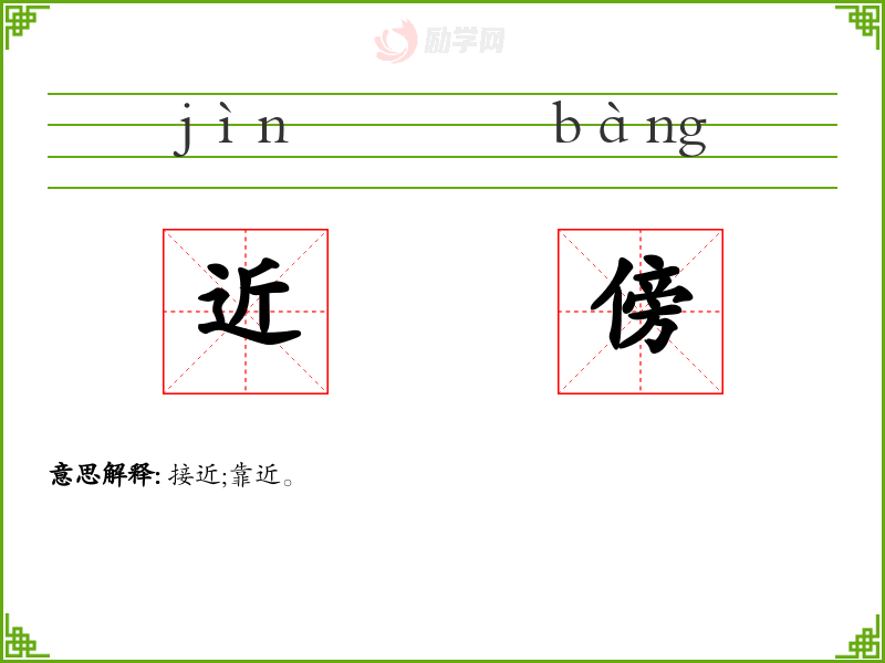 《说文》-傍,近也。 《乐府诗集·木兰诗》-双兔傍地走。
