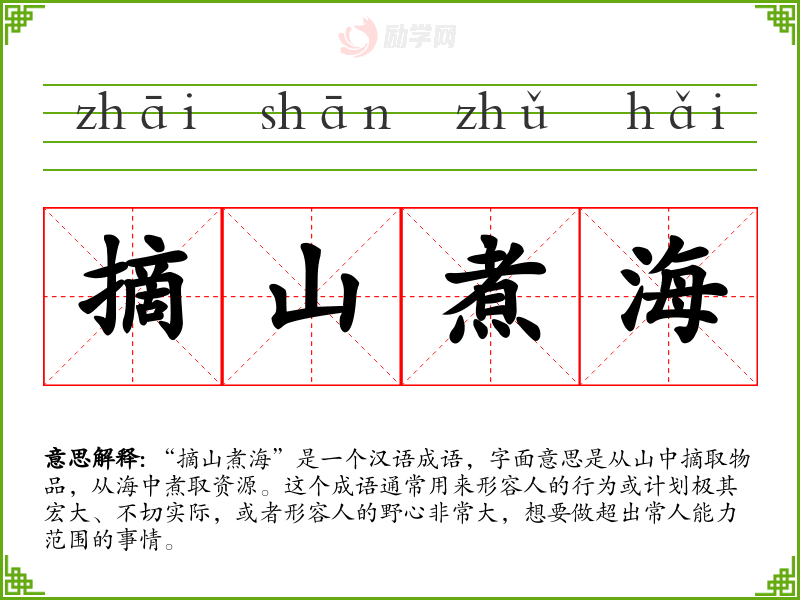1.摘山煮海的拼音是什么?摘山煮海怎么读?