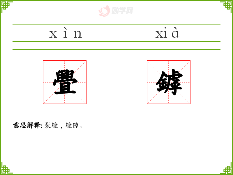 1.裂缝﹐缝隙。