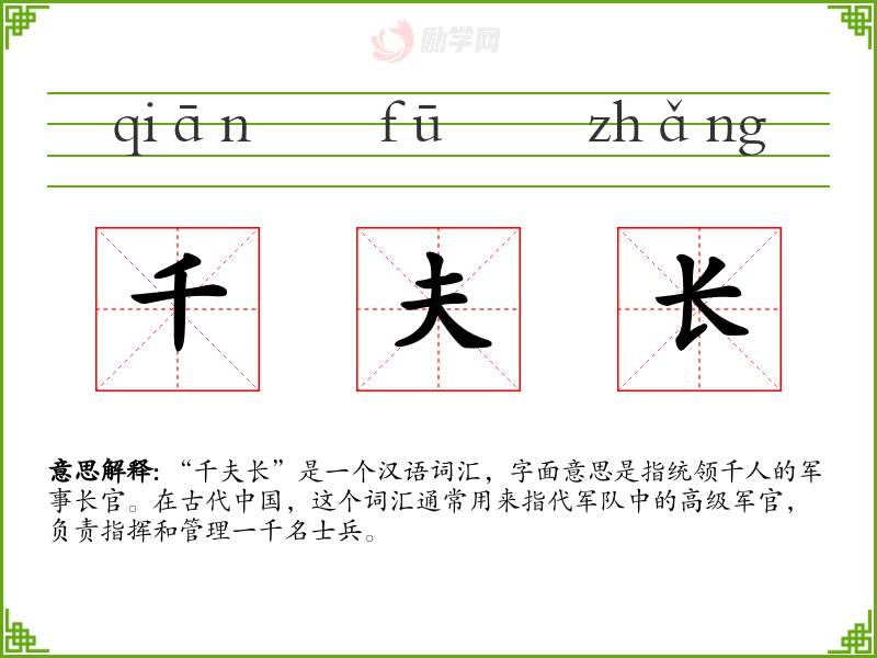1.千夫长的拼音是什么?千夫长怎么读?