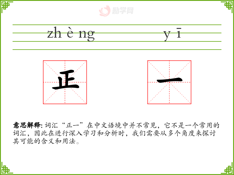 词汇“正一”在中文语境中并不常见,它不是一个常用的词汇,因此在进行深入学*和分析时,我们需要从多个角度来探讨其可能的含义和用法。