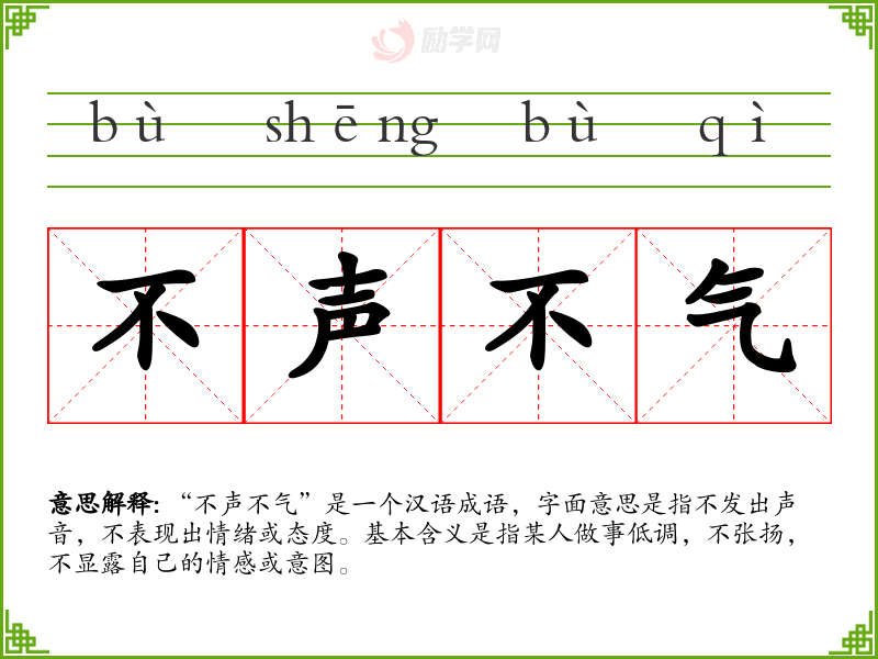 1.不声不气的拼音是什么?不声不气怎么读?