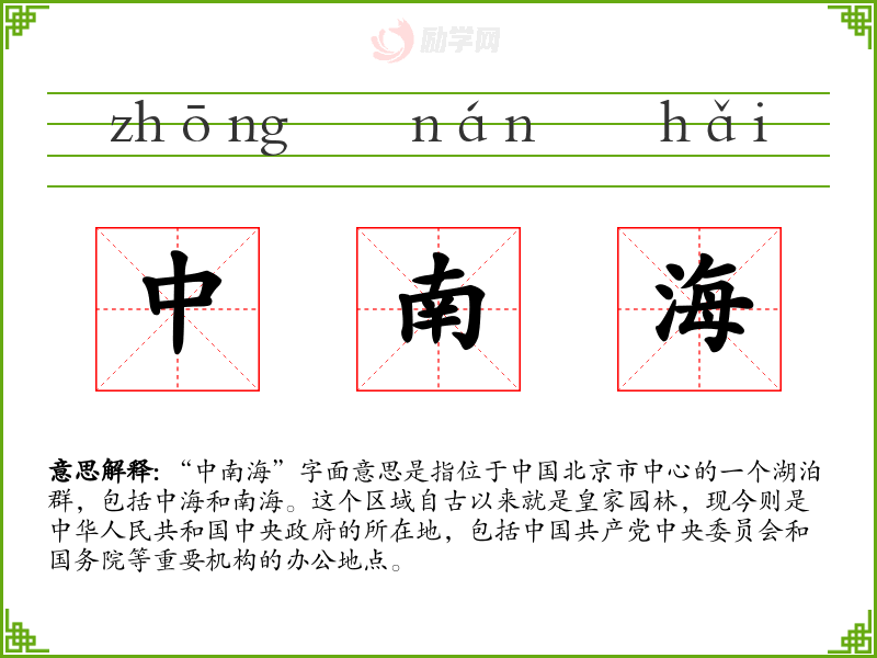 1.中南海的拼音是什么?中南海怎么读?