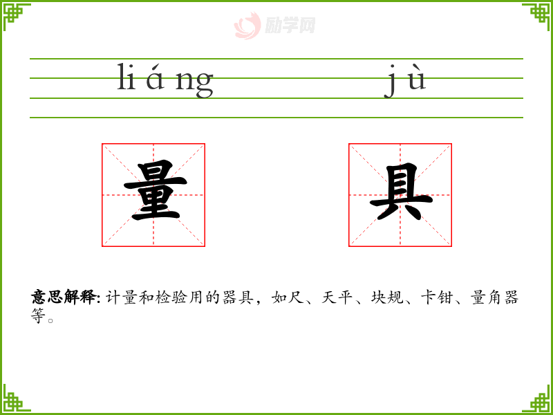 量具的拼音是:liáng jù