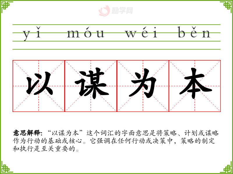 1.以谋为本的拼音是什么?以谋为本怎么读?