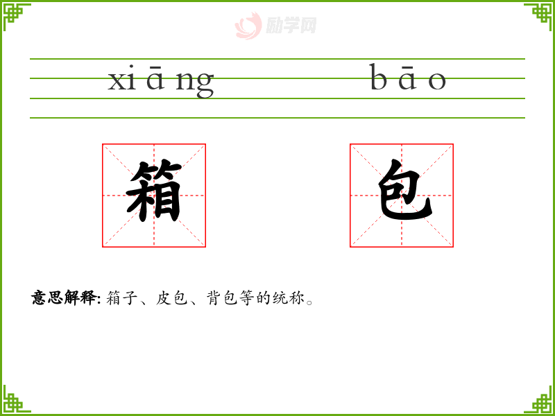 《说文》-箱,大车牝服也。 《诗·小雅·大东》。传:“箱,大车之箱也。”-不以服箱。 《诗·小雅·甫田》-乃求万斯箱。 张衡《思玄赋》。注:“箱,大车也。”-絷騕裹以服箱。 晋·夏侯湛《猎兔赋》-尔乃乘露箱,御良马。