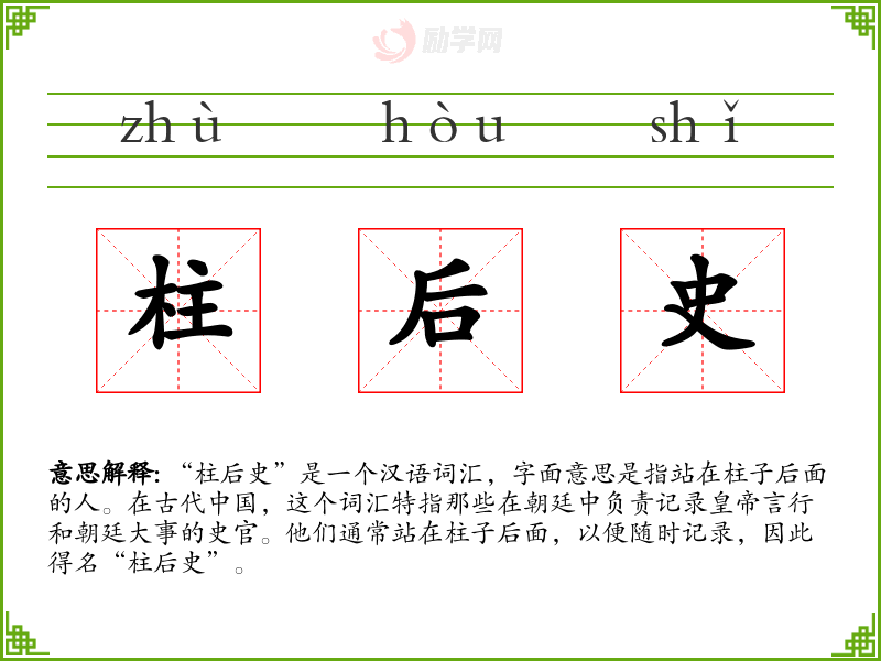 1.柱后史的拼音是什么?柱后史怎么读?