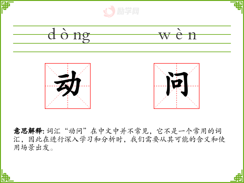 词汇“动问”在中文中并不常见,它不是一个常用的词汇,因此在进行深入学习和分析时,我们需要从其可能的含义和使用场景出发。
