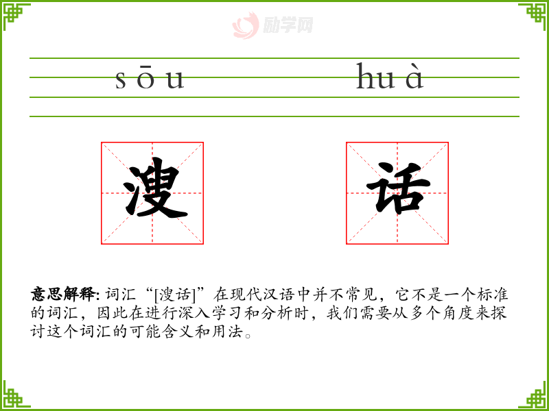 由于“[溲话]”不是一个标准词汇,我们无法对其进行深入的分析和理解。在语言学习和表达中,我们应当关注和学习标准的词汇,以确保沟通的有效性和准确性。