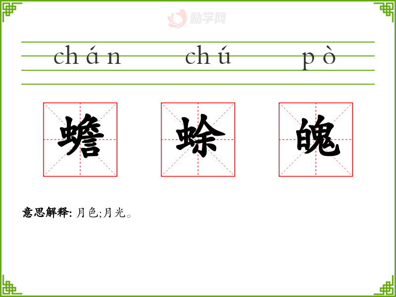 蟾蜍魄的意思是:月色;月光。