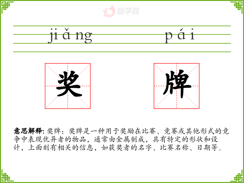 1.奖牌的拼音是什么?奖牌怎么读?