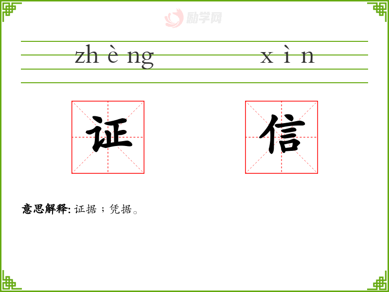 证信的意思是:证据﹔凭据。