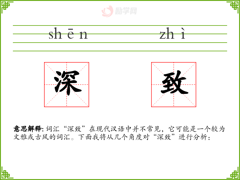 词汇“深致”在现代汉语中并不常见,它可能是一个较为文雅或古风的词汇。下面我将从几个角度对“深致”进行分析: