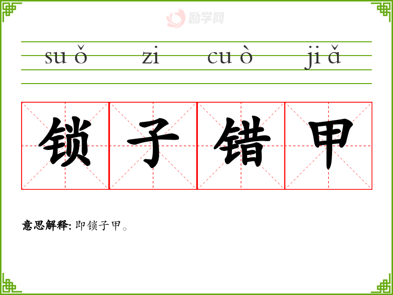 1.锁子错甲的拼音是什么?锁子错甲怎么读?