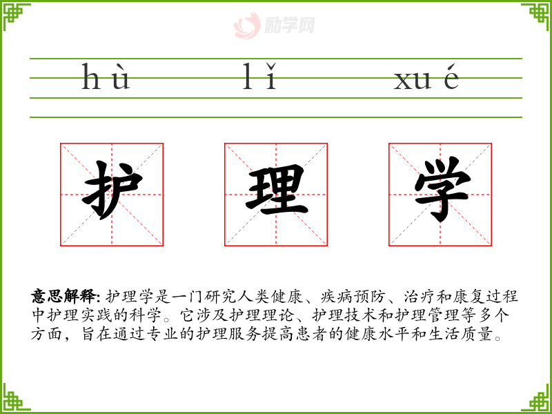 - 口语:在日常对话中,护理学可能被简化为“护理”或“护士工作”,用以指代与照顾病人相关的工作。