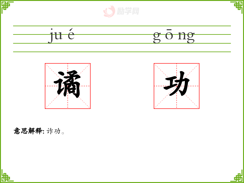 《说文》-譎,权诈也。 《广雅》-譎,欺也。 《韩非子·定法》-而奸臣犹有所谲其辞矣。 《韩非子·孤愤》-此人臣之所以谲主便私也。