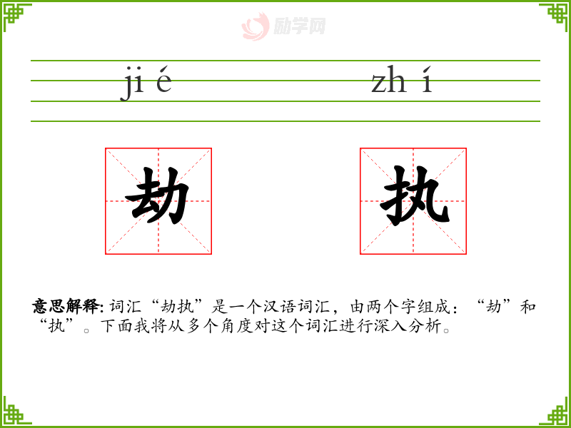词汇“劫执”是一个汉语词汇,由两个字组成:“劫”和“执”。下面我将从多个角度对这个词汇进行深入分析。