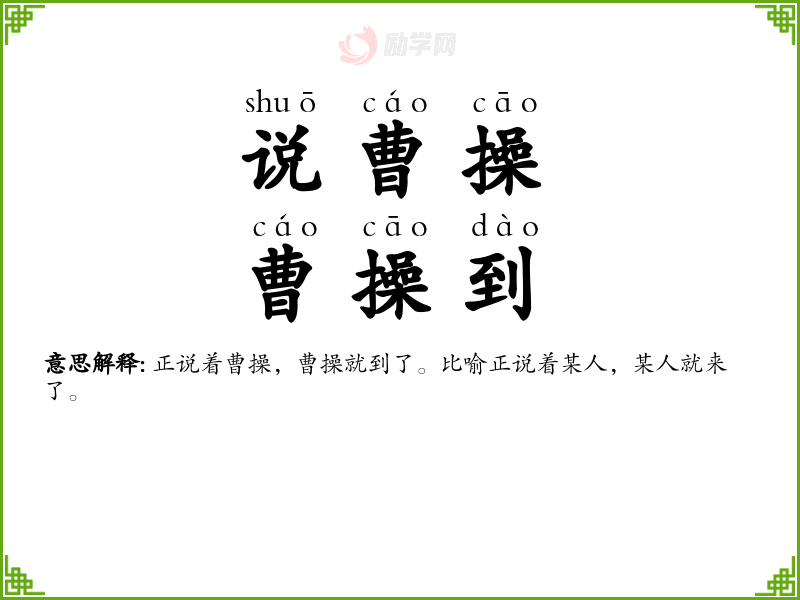 说曹操,曹操到的拼音是:shuō cáo cāo,cáo cāo dào