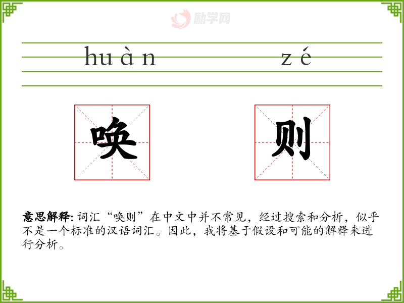 词汇“唤则”在中文中并不常见,经过搜索和分析,似乎不是一个标准的汉语词汇。因此,我将基于假设和可能的解释来进行分析。