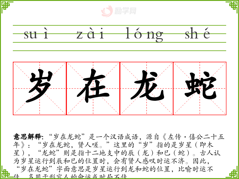 1.岁在龙蛇的拼音是什么?岁在龙蛇怎么读?