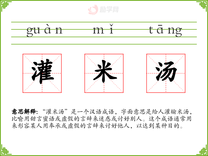 1.灌米汤的拼音是什么?灌米汤怎么读?