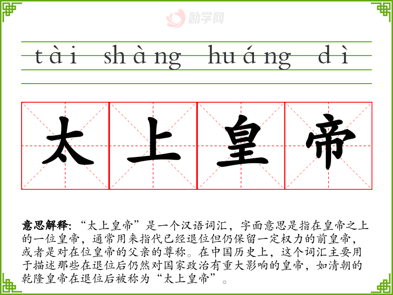 1.太上皇帝的拼音是什么?太上皇帝怎么读?