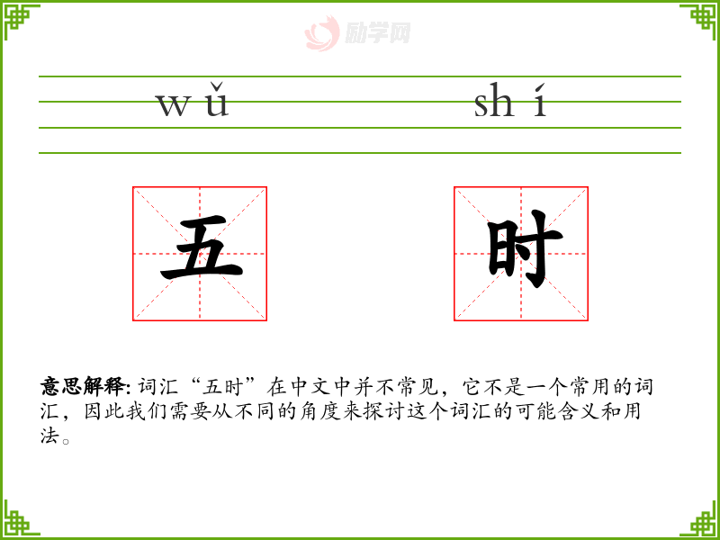 词汇“五时”在中文中并不常见,它不是一个常用的词汇,因此我们需要从不同的角度来探讨这个词汇的可能含义和用法。