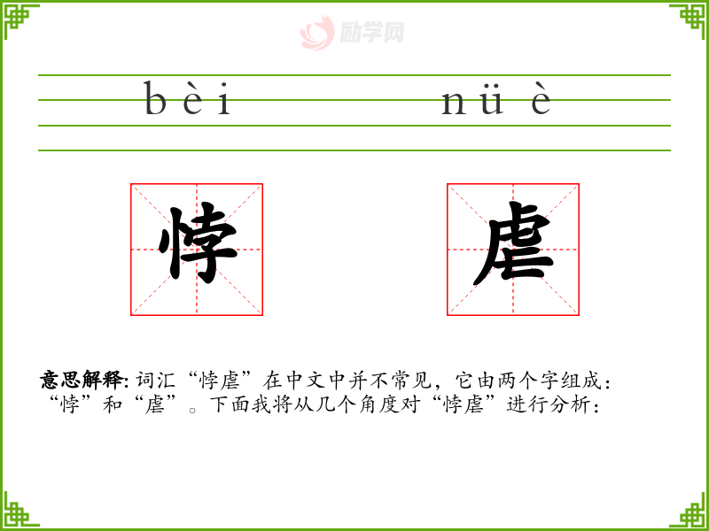词汇“悖虐”在中文中并不常见,它由两个字组成:“悖”和“虐”。下面我将从几个角度对“悖虐”进行分析:
