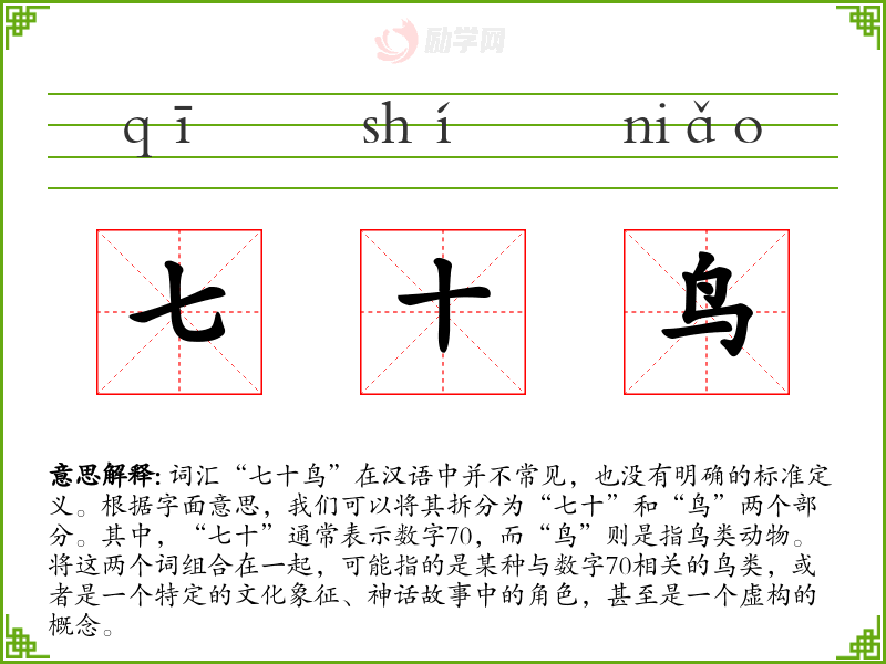 1.七十鸟的拼音是什么?七十鸟怎么读?