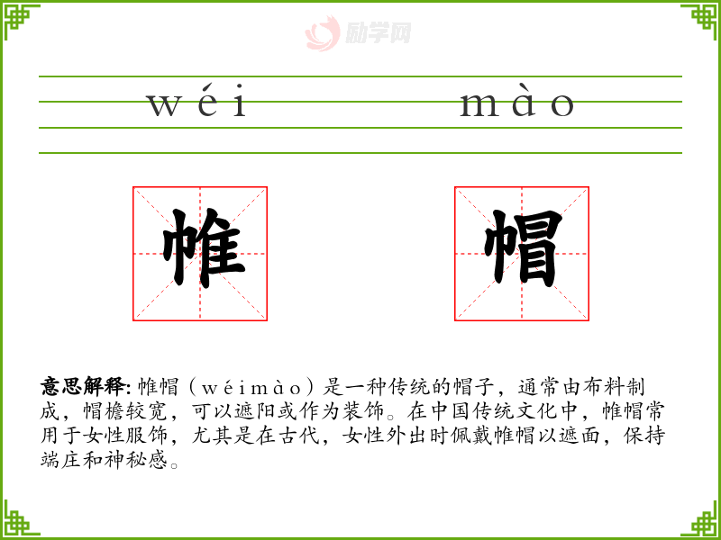 1.帷帽的拼音是什么?帷帽怎么读?