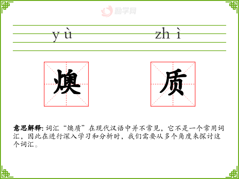 词汇“燠质”在现代汉语中并不常见,它不是一个常用词汇,因此在进行深入学习和分析时,我们需要从多个角度来探讨这个词汇。
