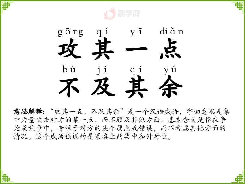 1.攻其一点,不及其余的拼音是什么?攻其一点,不及其余怎么读?
