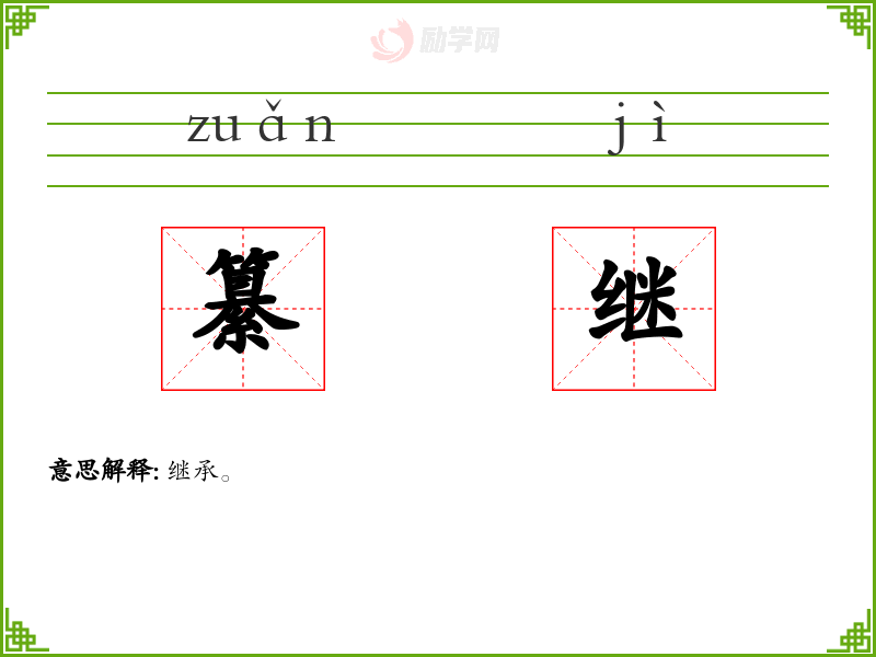 《说文》-纂,似组而赤。 《汉书·景帝纪》-锦乡纂组,害女红者也。 《国语·齐语》-缕纂以为奉。