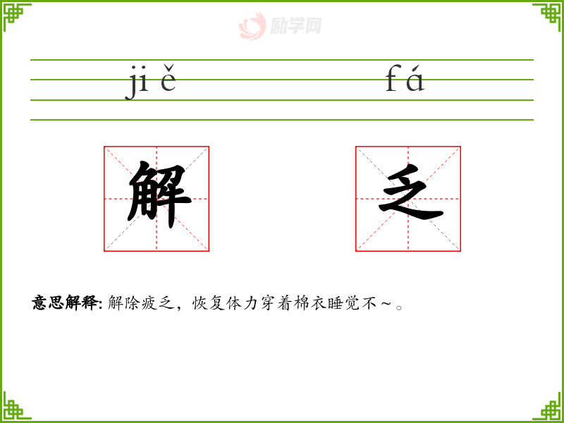 解乏的意思是:解除疲乏,恢复体力穿着棉衣睡觉不~。