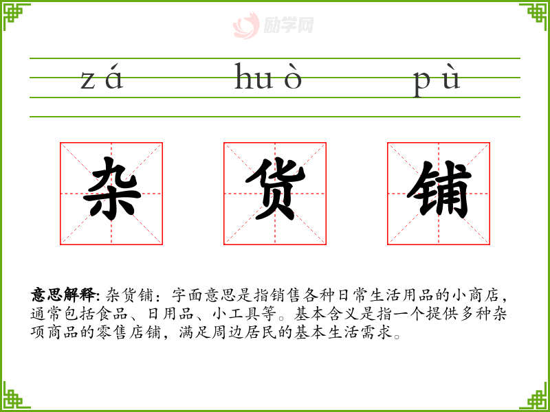 1.杂货铺的拼音是什么?杂货铺怎么读?