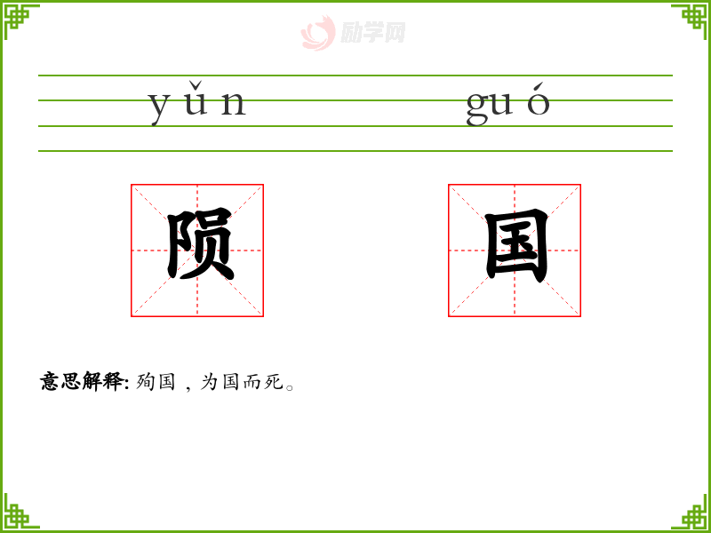 《说文》-国,邦也。 《周礼·太宰》。注:“大曰邦,小曰国。”-以佐王治邦国。 《周礼·大司马》。注:“国谓王之国;邦国,谓诸侯国也。”-方千里曰国畿,诅祝以叙国之信用,以资邦国之剂信。 《左传·隐公元年》-都城过百雉,国之害也。 《论语·微子》-丘也闻有国有邦者。 《左传·庄公十年》-夫大国,难测也,惧有伏焉。 汉·贾谊《新书·过秦论上》-秦人开关延敌,九国之师,逡巡而不敢进。