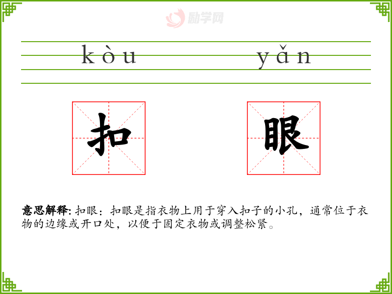 1.扣眼的拼音是什么?扣眼怎么读?