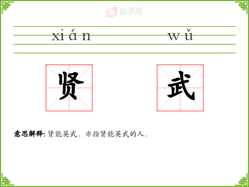 贤武的意思是:贤能英武。亦指贤能英武的人。