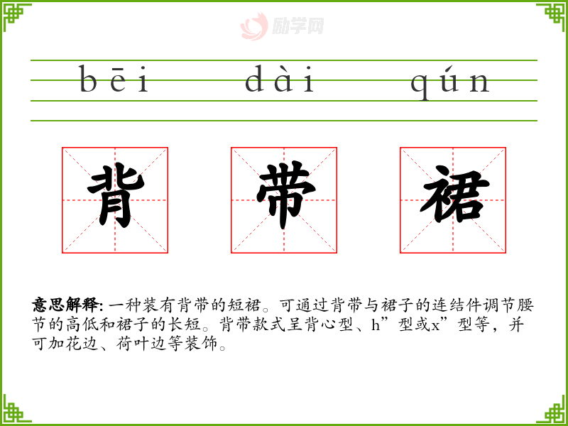 1.背带裙的拼音是什么?背带裙怎么读?