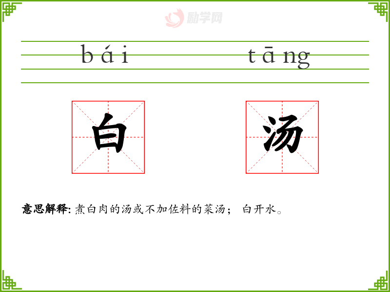 白汤的意思是:煮白肉的汤或不加佐料的菜汤; 白开水。