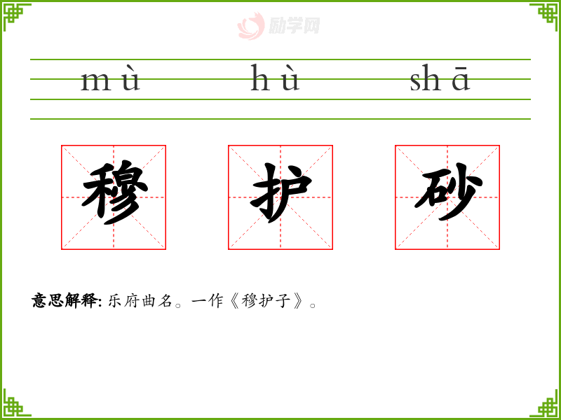 穆护砂的意思是:乐府曲名。一作《穆护子》。