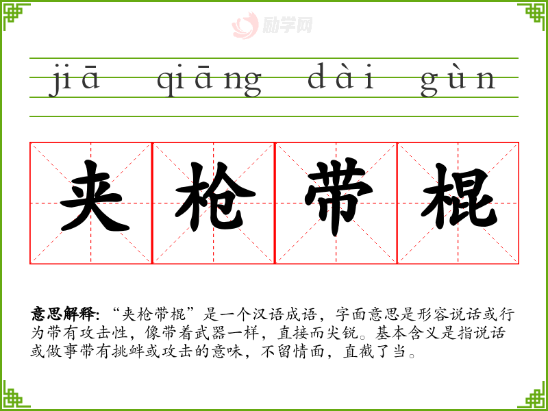 1.夹枪带棍的拼音是什么?夹枪带棍怎么读?