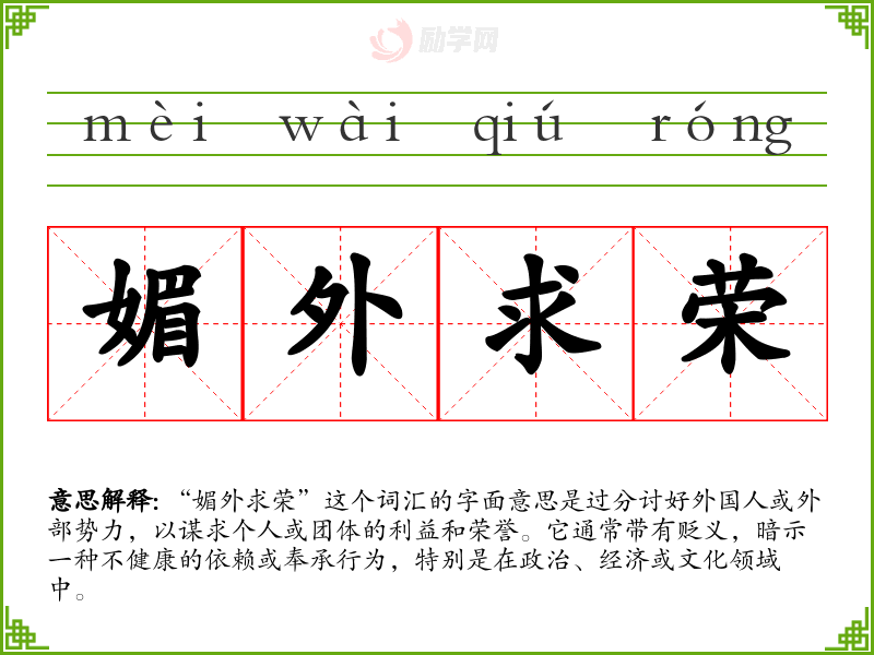 1.媚外求荣的拼音是什么?媚外求荣怎么读?