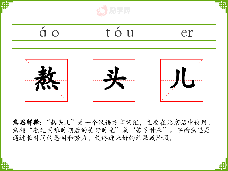 1.熬头儿的拼音是什么?熬头儿怎么读?