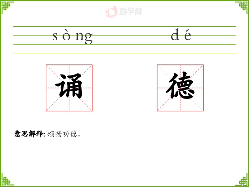 诵德的意思是:颂扬功德。