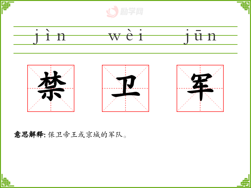 1.禁卫军的拼音是什么?禁卫军怎么读?