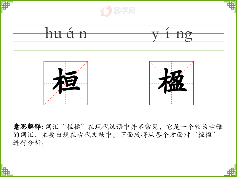 词汇“桓楹”在现代汉语中并不常见,它是一个较为古雅的词汇,主要出现在古代文献中。下面我将从各个方面对“桓楹”进行分析: