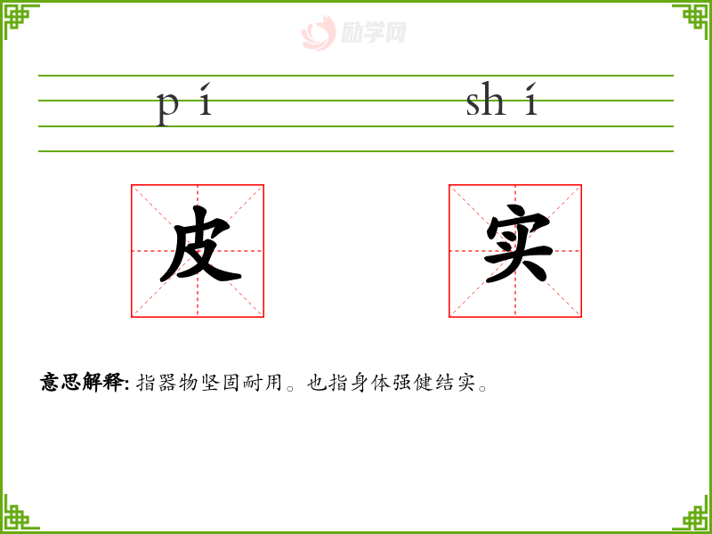 皮实的意思是:指器物坚固耐用。也指身体强健结实。